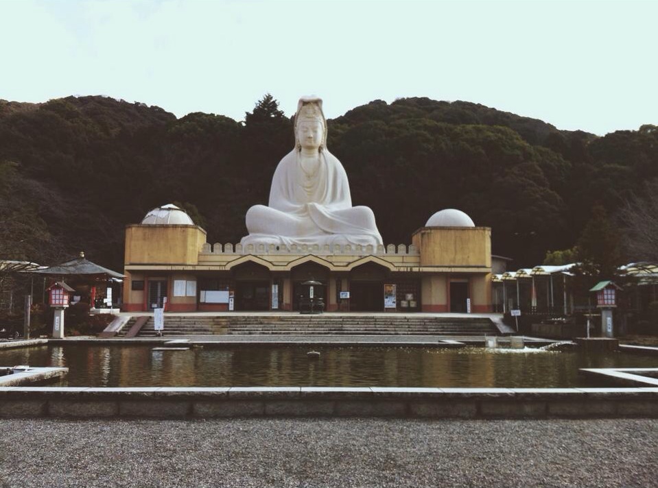 This week started with an end. On our final morning in Kyoto, we vowed to find the large Buddha we had spotted on the edge of town while we were up the Kyoto Tower. A true test of how well we knew the streets, we managed to find it after going in a few circles (however that was most likely due to us getting lost in conversation). The monument, we learnt on arrival, was called Ryozen Kannon and is a tribute to all the unknown soldiers who bravely fought and died in World War II. The 24 metre high compassionate Buddha is a symbol of peace, both for the state of Japan, and for those who died fighting for it. Not mentioned anywhere in our guidebook, I was particularly pleased with our discovery. It was an interesting and un-touristed little complex with plenty of temples, memorials and shrines – some for luck, marriage, peace and even blessings for miscarried foetus.