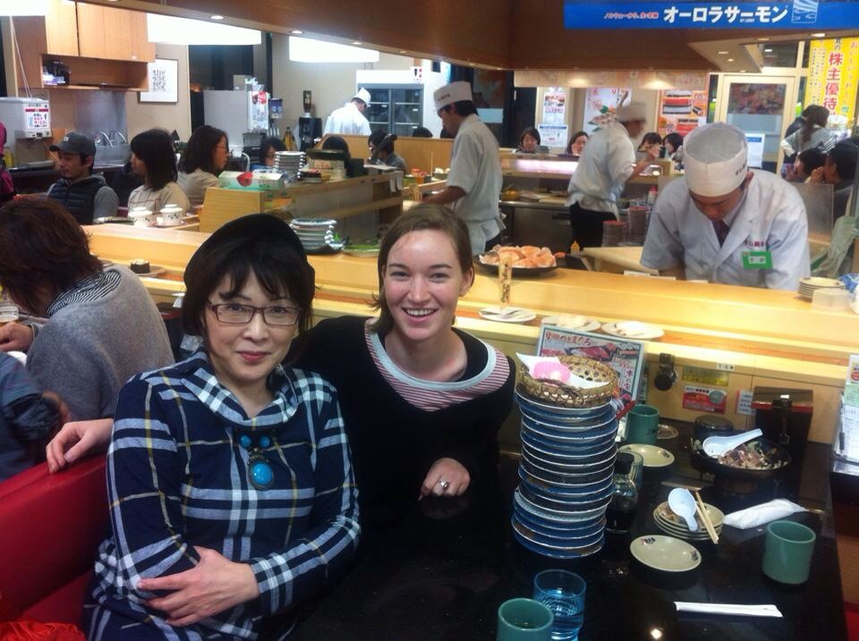 Once arriving in Tokyo City, we found Hiroko, after a kind gentleman helped us decode a confusing pay phone, much to both ours and his amusement. Hiroko is a friend of my grandmother’s who hosted me when I first visited Japan, some 19 years ago. She had kindly offered to have us stay at her house for the first night we were in Tokyo so we could see her perform in a traditional drum concert to be held the next day. She was more than hospitable while we stayed with her, more than we could ever have asked for or expected. She treated us to the most amazing sushi train experience I have ever had (they filleted the fish before your eyes), the chance to cook our own okonomiyaki, a real crazy Japanese experience at a Ninja restaurant, cakes, cats, and most of all an insight into a side of Japanese culture we could not have got through guidebooks. She even introduced us to her friend Emi who, with her husband, kindly took us up the Tokyo SkyTree to 350metres above Tokyo and treated us to a lovely lunch while Hiroko practiced her drumming.