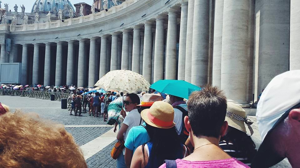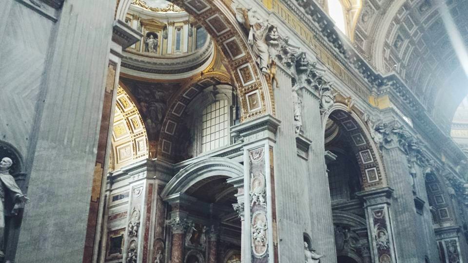 Arriving at the Basilica was monumental and so was the line! Thankfully it moved relatively quickly because I don’t think I would have managed in the sun. I might even have given in to the people trying to sell me umbrellas and scarves had Catherine not been there brutally turning them away. As I got closer to the Basilica it became more and more impressive, but it was once I was inside that my jaw really dropped. We’ve seen a fair few churches in the time we’ve been traveling so far but this one by far takes the cake. It was MASSIVE and every last inch from the windows to the walls was elaborately decorated. As the light spilled in through beautiful stained glass windows, all you could see was a sea of selfie-sticks emerging from the groups of people gathering below. We finished the visit by popping down to the Crypt to see the tombs of hundreds of Popes and read about how they had contributed to the church and faith.