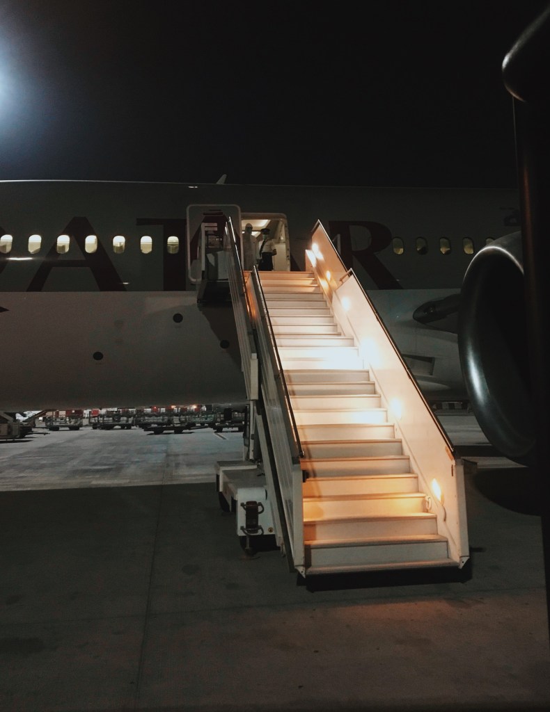 “It felt a bit like a post-apocalyptic film. Their beautiful QATAR uniforms were covered in white hazmat suits, and the plane felt completely empty,” says Camilla. “Funnily enough I did have to sit next to someone just for takeoff as, with so few on board, they had to balance the weight of the plane.”